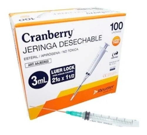 Jeringa Desechable 3 ml. 21 g x 1. 1/2 Cranberry